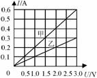 两定值电阻甲、乙中的电流与电压关系如图所示,甲的电阻为