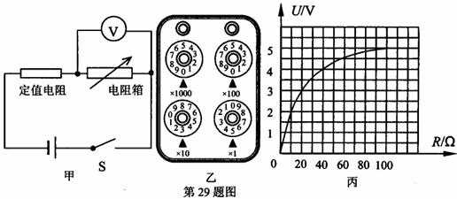 (1)甲小组选取的定值电阻为15W,电阻箱阻值如图乙所示,其值为________W,此时电压表的示数为3.5V,则该小组所用电源的电压为______V;实验中若增大电阻箱阻值,