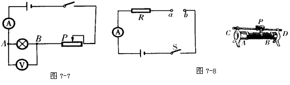 15.如图7-8所示在滑动变阻器的滑片P向右移动过程中, 电路中的电流变大。则电路与滑动变阻器的连接方式正确的是( )