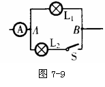 17.如图7-9所示,AB间电压保持不变,当开关S闭合后,电流表的示数为I1,当S断开后,电流表示数为I2,则I1、I2的大小关系为( ).