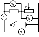 某同学按图7-10所示电路图连接电路进行实验,在实验过程中,若保持R1不变,并通过改变滑动变阻器滑片P的位置,使电压表V1的示数分别为2V、4V和6V,电压表V2、V,电流表A相应的示数如下表所示: