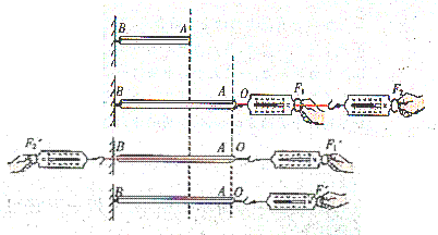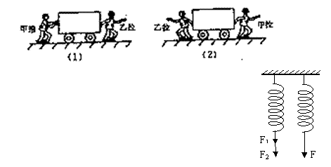 (6)研究同一直线上方向相同的两个力合成的实验如图所示,