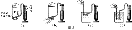 (2)小明再作图(b)所示的检查. 当用手指按压(不论轻压还是重压)橡皮膜时,发现U形管两边液柱的高度几乎不变化. 出现这种情况的原因是:__________________________ .
