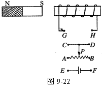 7.如图9-22所示,为使滑动变阻器的滑片P向右移动时,通电螺线管对条形磁铁的斥力变大,则电源和变阻器接人电路的方式可以是( )