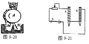 6.小华同学在做“探究电磁铁”实验中,使用两个相同的大铁钉绕制成电磁铁进行实验,如图9-21所示,下列说法中正确的是 ( )