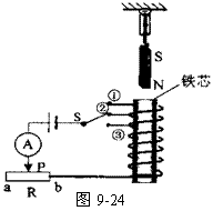 9.如图9-24所示实验装置,弹簧测力计下面挂着条形磁铁,螺线管中插有铁芯,开关S拨在触点②位置。要使弹簧测力计的示数变大,下列操作方法能够实现的是( )