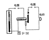 2.如图9-36为蔬菜大棚使用的一种温度自动报警器,若水银温度计里封入一段金属丝,当温度达到金属丝下端所指的温度时,电铃就响起来,发出报警信号,请说明它的工作原理.