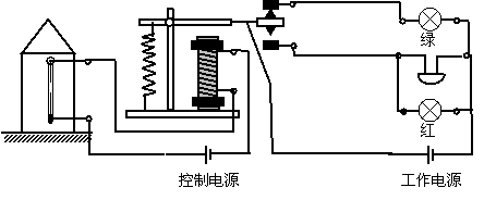 1.粮仓为了防止谷物缓慢氧化积聚热量过多而发生火灾,如图9-35所示,用带金属丝的水银温度计和电磁继电器安装成自动报警器,正常情况下绿灯亮,当仓内温度升高时红灯亮,同时电铃也响,以此来报警,请按上述要求把各元件连成电路.