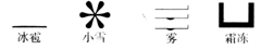 2. 图1中的符号分别代表冰雹、小雪、雾和霜冻四种天气现象,其中主要通过液化形成的是( )