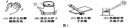 14.图5中属于做功改变内能的是图 ,属于热传递改变内能的是 (选填字母)。