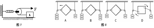 19.如图7所示,物体A的质量为20千克,在力F的作用下,2秒内沿水平方向运动了1米,弹簧测力计的示数为80牛,则物体受到地面的滑动摩擦力为________牛,拉力的功率为_________瓦。