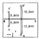 71.(04大连B)在"研究平面镜成像特点"时,某同学利用一块玻璃板代替平面镜。图是这位同学做完实验后白纸上留下的记录,其中MN是他实验时画出的玻璃板的位置,A.B是两次实验中点燃的蜡烛所在的位置,A1、B1分别是他找到的蜡烛的像的位置。