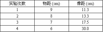 (2)所用凸透镜的焦距为10cm。某同学的实验数据如下表。