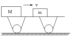 10. 如图5所示,小车在水平面上匀速行驶,车内光滑的桌面上放着两物体与小车速度相同,且M>m。在小车突然停止运动时,M和m会由于惯性而继续运动,在m离开桌面前( )