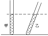 12. 甲乙两支完全相同的试管,内装质量相等的不同液体,甲试管竖直放置,乙试管倾斜放置,两试管液面相平(如图6),该液体对两试管底的压强分别为