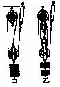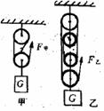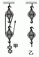 70.(05广东)小红想探究滑轮组的机械效率是否与绳子的绕法有关,她先通过实验算出图甲中滑轮组的机械效率,请你帮她在图乙中画出下一步实验所需的完整的组装图(包含绳的绕法与提升的重物)。(甲、乙两滑轮组中的滑轮完全相同)