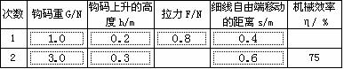 73.(04南京)在"测滑轮组机械效率"的实验中,用同一滑轮组进行了两次实验,实验数据如下: