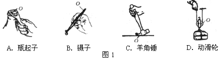 1.在图1所示的简单机械中,属于费力杠杆的是