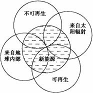 将下列各能源所代表的字母,按能源的分类,填入能源集合图中的相应位置,每个字母只用一次:A:地热、B:煤炭、C:风能、D:石油、E:天然气、F:核能、G:太阳能、H:潮汐能、I:水能。