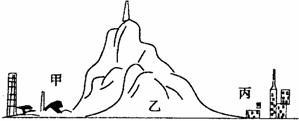 3.近30年来,我国成功地发射了各种用途的航天器进入太空,这标志着我国的运载火箭技术水平已跻身于世界先进行列。图中甲为某火箭发射场,乙为山区,丙为城市。发射场正在进行火箭发射试验。