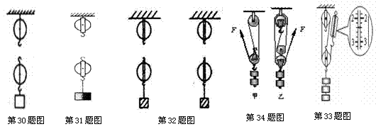 32、(★)(06湖南长沙)请画出利用如图所示滑轮组提升重物时的两种绕线方法。