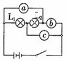 2.如图11-2所示的电路里,在圆圈a、b、c上连接适当电表,使灯L1和L2并联且能发光,那么a应是 表;b是 表;c是 表。