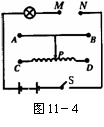 5.如图11-4所示,若滑动变阻器的滑P向C端滑动时,小灯泡变亮,说明滑动变阻器的接线柱 和 接到电路的M、N两端。