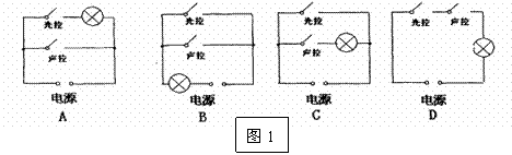 4、楼道里,夜间只是偶尔有人经过,电灯总是亮着会浪费电能。科研人员利用光敏材料制成“光控开关”,天黑时自动闭合;天亮时自动断开。利用声敏材料制成“声控开关”,当有人走动发出声音时,自动闭合;无人走动时,自动断开。若将这两个开关配合使用(如图1),就可以使楼道灯变得“智能化”,这种“智能”电路正确的是( )