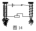 (长春市)在探究“影响电磁铁磁性强弱的因素”实验中,小明用相同的漆包线和铁钉绕制成电磁铁A和B,设计了图14所示的电路。