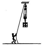 2、(08江苏南通)如图所示,工人师傅用一个滑轮组在40s内将重600N的木箱从地面匀速吊上4m高的阳台,所用的拉力为220N,不计绳重和摩擦.求: