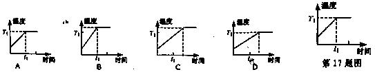 11、(08温州)给一定质量的水加热,其温度随时间变化的关系如图所示。若其它条件不变,仅将水的质量增加,则水的温度随时间变化的图线应该是( )