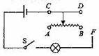 、(2006年陕西省课改区)如图7所示,闭合开关S后,要使滑动变阻器的滑片向右移动时灯泡变暗,应把F点与滑动变阻器的 点用导线连接起来。