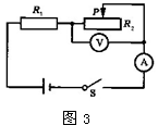 [例题3]如图3所示电路,电源电压U=4.5V且保持不变,R1=5Ω,滑动变阻器的最大阻值为20Ω,电流表量程为0∽0.6A,电压表的量程为0∽3V,通过分析计算:说明滑动变阻器R2允许的取值范围