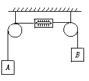 18.如图12-7所示,AB质量分别为20 kg和15 kg,弹簧秤重力不计,用手抓住弹簧秤时弹簧秤的读数是( ),用手抓住A时,弹簧秤读数为( ),用手抓住B时弹簧秤读数是( )(秤钩在左侧).