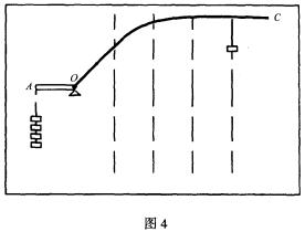 实验2 将OB卸下来,换上OC杆,虚线位置不变(如图4所示)保持左边的阻力