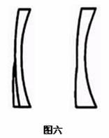 这里需要注意的是,按图五形式胶合子镜片,尽管外观不好看,但光学效果较好;如果采用图六方式附加子镜片,则外观虽然好看,但近用区的棱镜度很大,象跳及象缺损大,因而光学性能不如图五胶合形式的好。