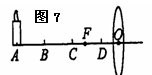 16.如图7所示,蜡烛从距凸透镜40㎝的A点出发,沿主光轴经B、C到达D点。当它移动到B点时,所成的像正好与烛焰等大,已知AB=BC=CD=10㎝,则 ( )
