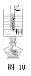 29.图10所示,甲为盛有水的烧杯,试管乙直插入甲容器水中(试管未碰底)。甲烧杯受到酒精灯持续加热后,发现乙试管内的液体沸腾起来了,根据给出的物质在1个标准大气压的沸点的表格,可判断试管乙内的液体一定是_____________。