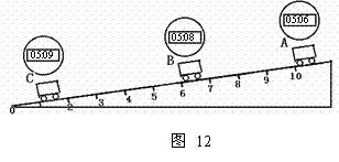 小明在“测小车的平均速度”的实验中,设计了如图12所示的实验装置:小车从带刻度(分度值为1 dm)的斜面顶端由静止下滑,图中的圆圈是小车到达A、B、C三处时电子表的显示(数字分别表示“分:秒”),则