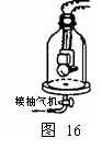 如图16所示,在做真空是否传声的实验中,随着玻璃罩内的空气被逐渐抽出,电铃的声音将逐渐变小直至听不到.某同学在做该实验时虽然听到的铃声逐渐变小,但始终都能听到铃声.请你分析出两个原因.