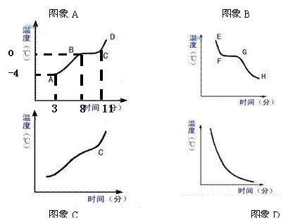 (1)能描述冰熔化过程的是图象 ,水凝固过程的是图象 ,蜡烛熔化过程的是图象 ,蜡烛凝固过程的是图象 。