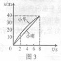 7.课外活动时,小明和小华均在操场上沿直线进行跑步训练。在某次训练中,他们通过的路程和时间的关系如图3所示,则下列说法中正确的是