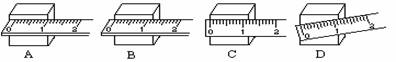 1、如图1用厚刻尺测量木块的长度,其中正确的测量图是……………( )