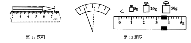 12、在用天平测量矿石的质量时,应将天平放在___________工作台上,游码移至标尺左端的“0”刻度线处,发现指针左右摆动幅度如图甲所示,此时应将平衡螺母向__________(选填“左”或“右”)调节,使天平平衡.把矿石放到天平左盘,当右盘中所加祛码和游码的位置如图乙所示时,天平再次平衡.则矿石的质量是_________g.