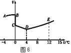14、图6是一定质量的某种晶体体积随温度变化的图像,分析图像可知:(1)这种晶体的熔点是___________℃;(2)D点的密度_______E点的密度。(选填“大于”、“等于”或“小于”)