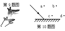 10、如图所示,一束光线射到平面镜上,经平面镜反射后,反射光线经过的点是