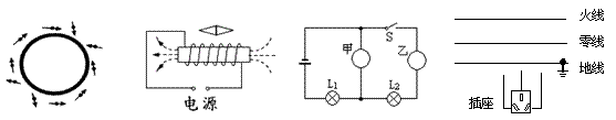 16、请根据下图中的信息,标出电源的正负极和小磁针的N极。