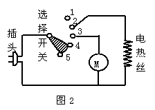 4.如图2所示是理发吹风的电路,其中电热丝通电会发热,电动机通电能送风,选择开关S同时与哪两个触点接触时,电吹风送出来的是热风( )