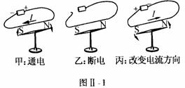 9.如图Ⅱ-5所示电路,闭合开关.闭合电路中的一段导体AB在磁场中受力向右运动.要