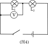 6、如图(4)所示的电路中,当开关闭合后,发现电压表示数为零,那么不可能出现的